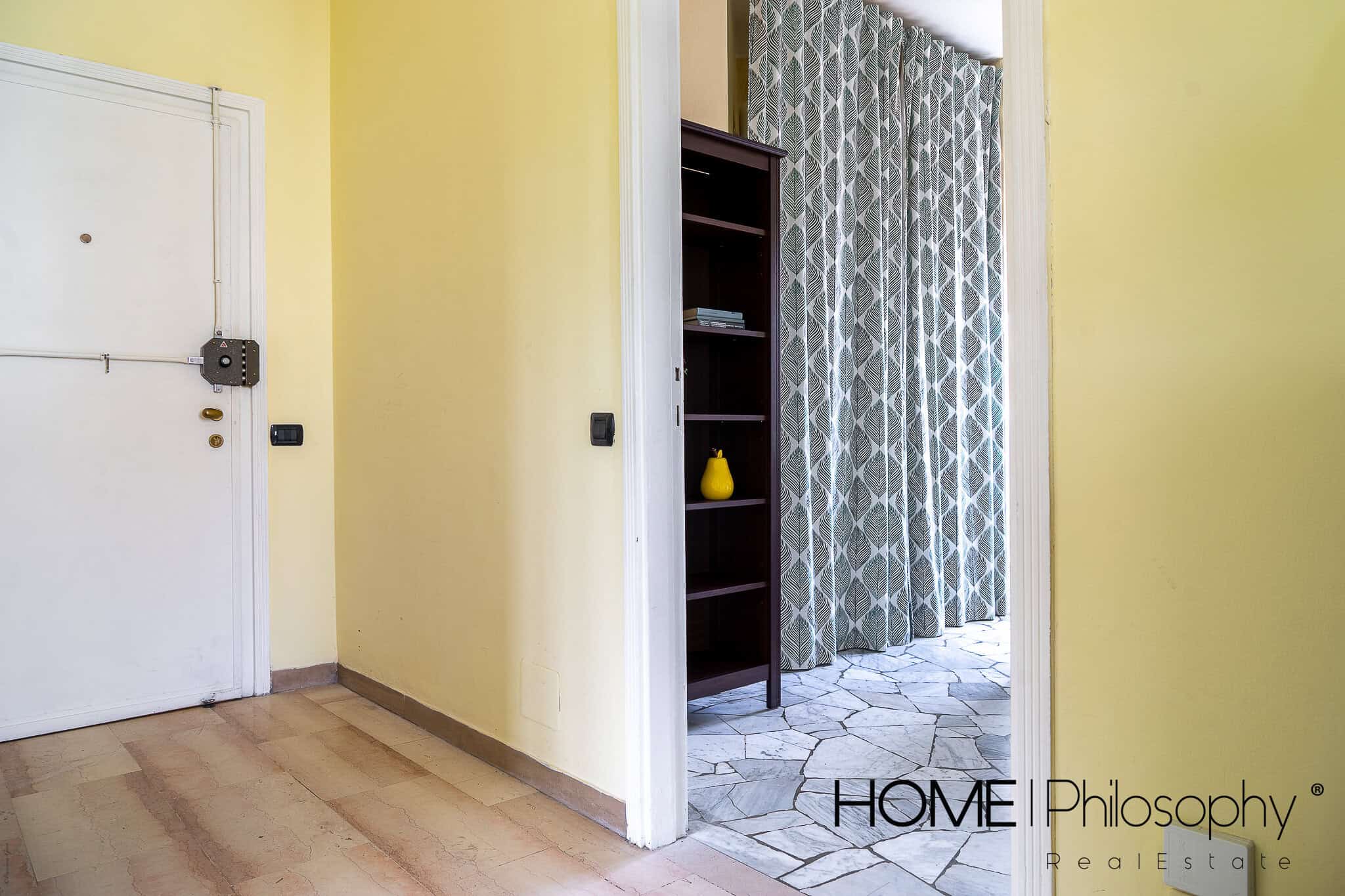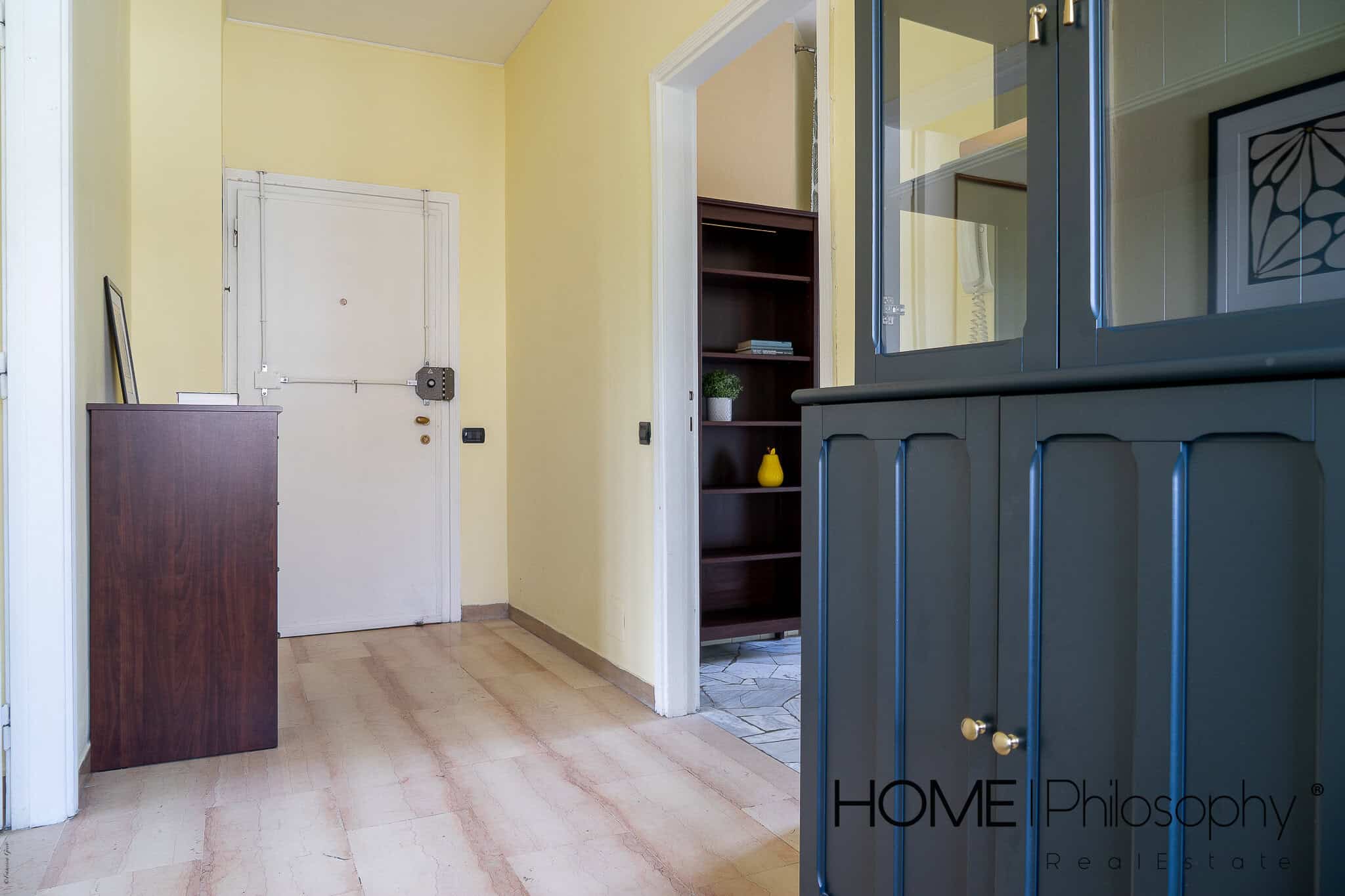 L’appartamento accoglie nell’ ampio corridoio che permette di raggiungere comodamente i vari ambienti della casa.