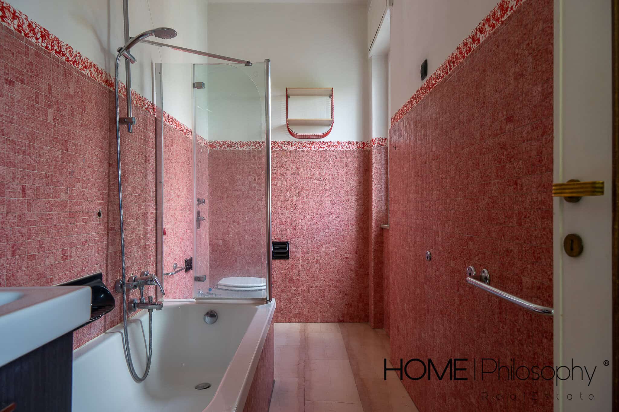 Il bagno finestrato ha un’ottima metratura ed è provvisto di vasca da bagno con paretina para-schizzi in vetro già installata.