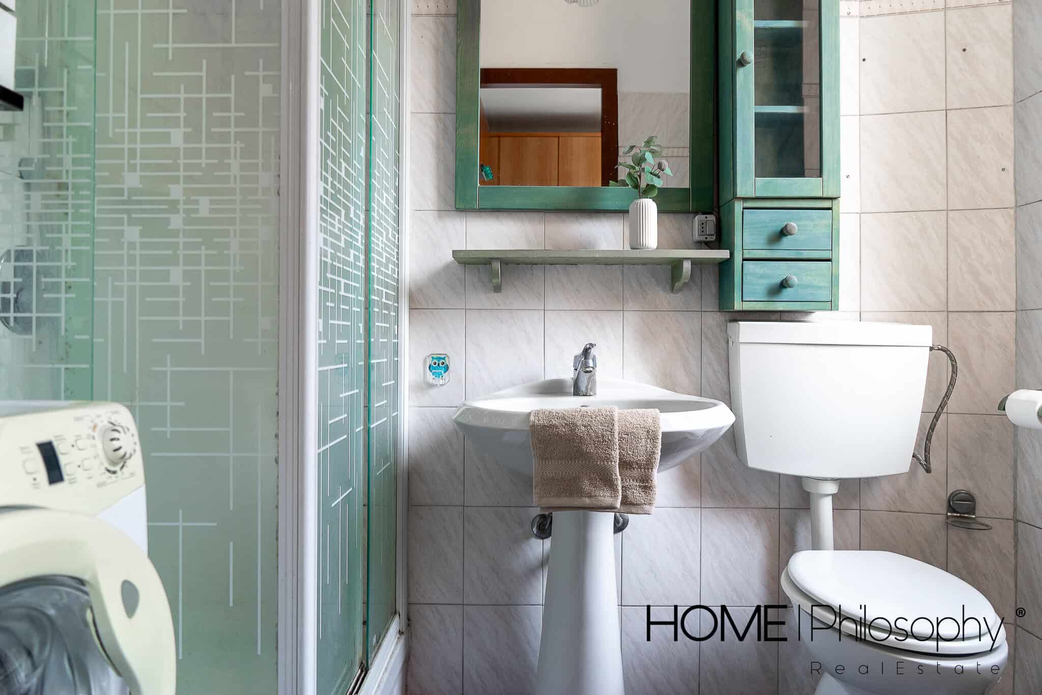 Il bagno, finestrato e dotato di doccia, completa la funzionalità dell’abitazione.