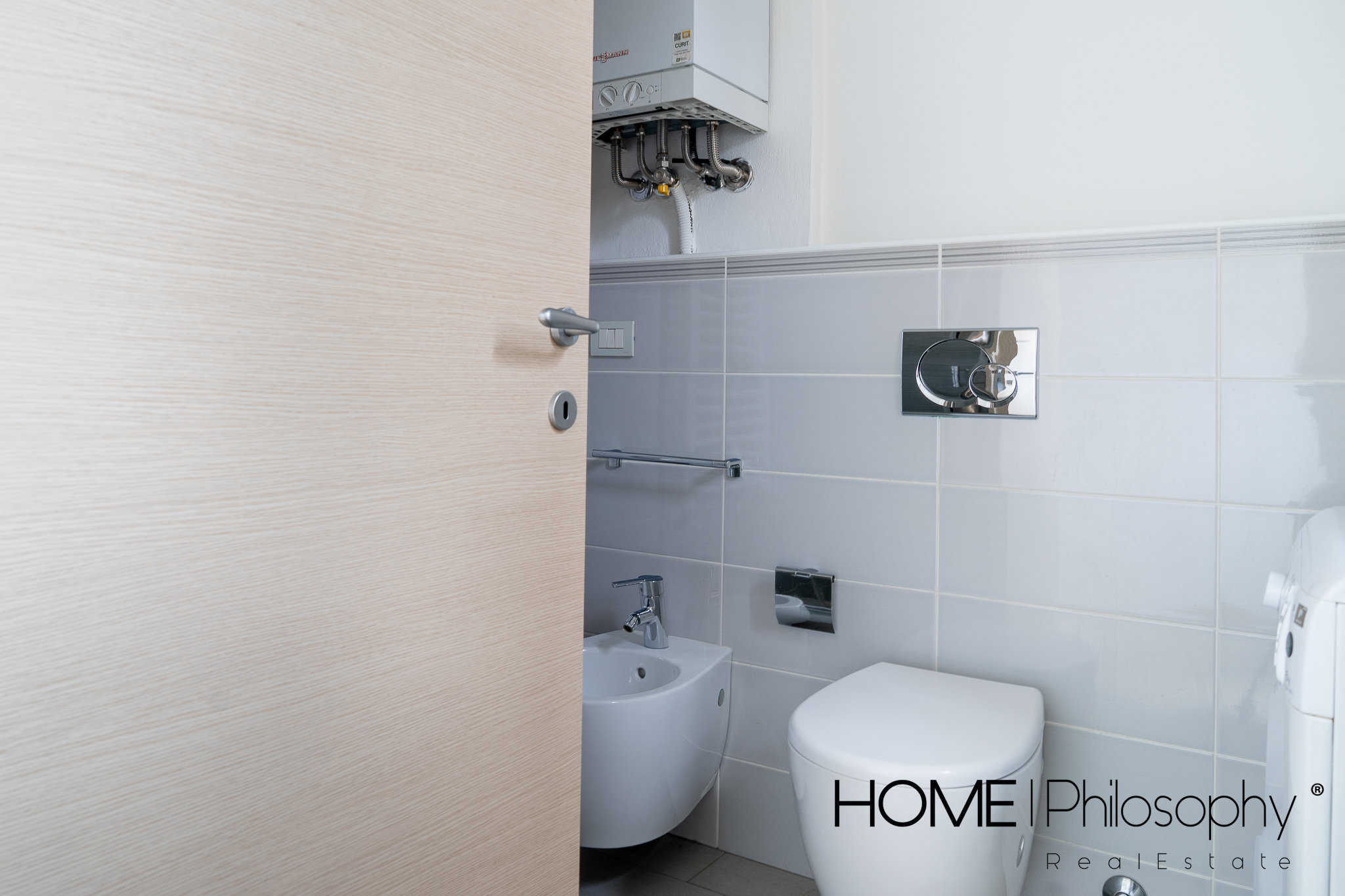 Il bagno è grazioso, completo di sanitari e con box doccia. Presente la lavatrice.