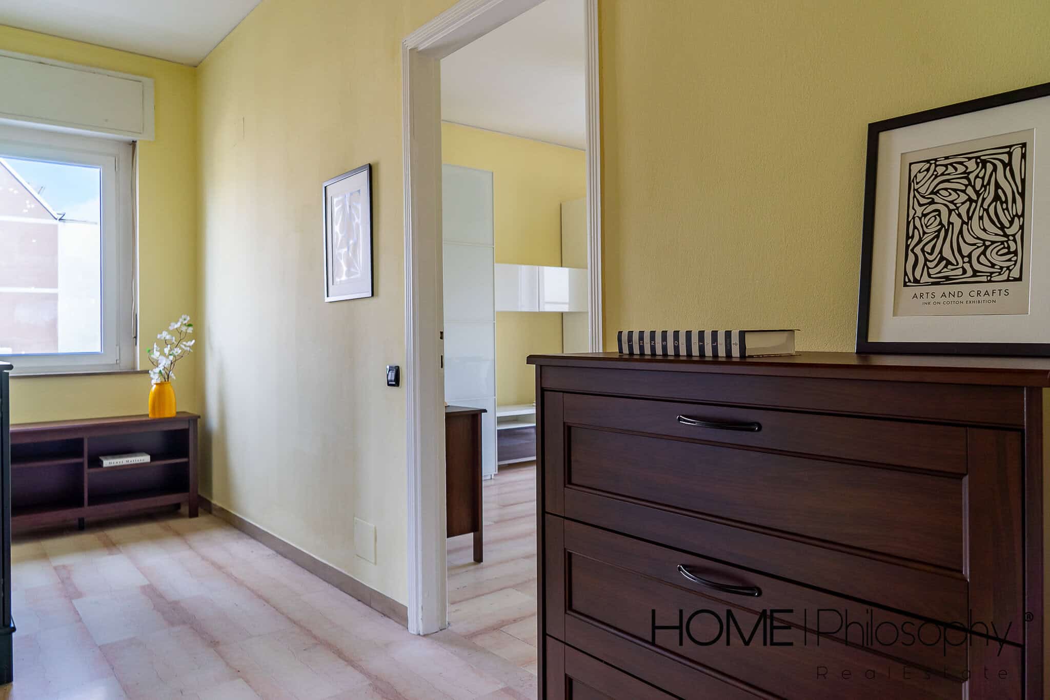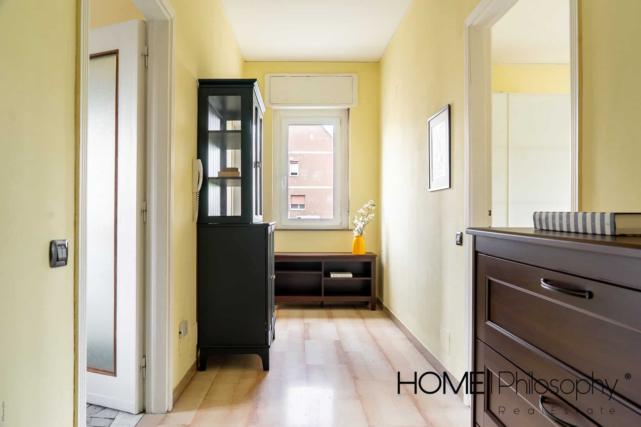 L’appartamento accoglie nell’ ampio corridoio che permette di raggiungere comodamente i vari ambienti della casa.
