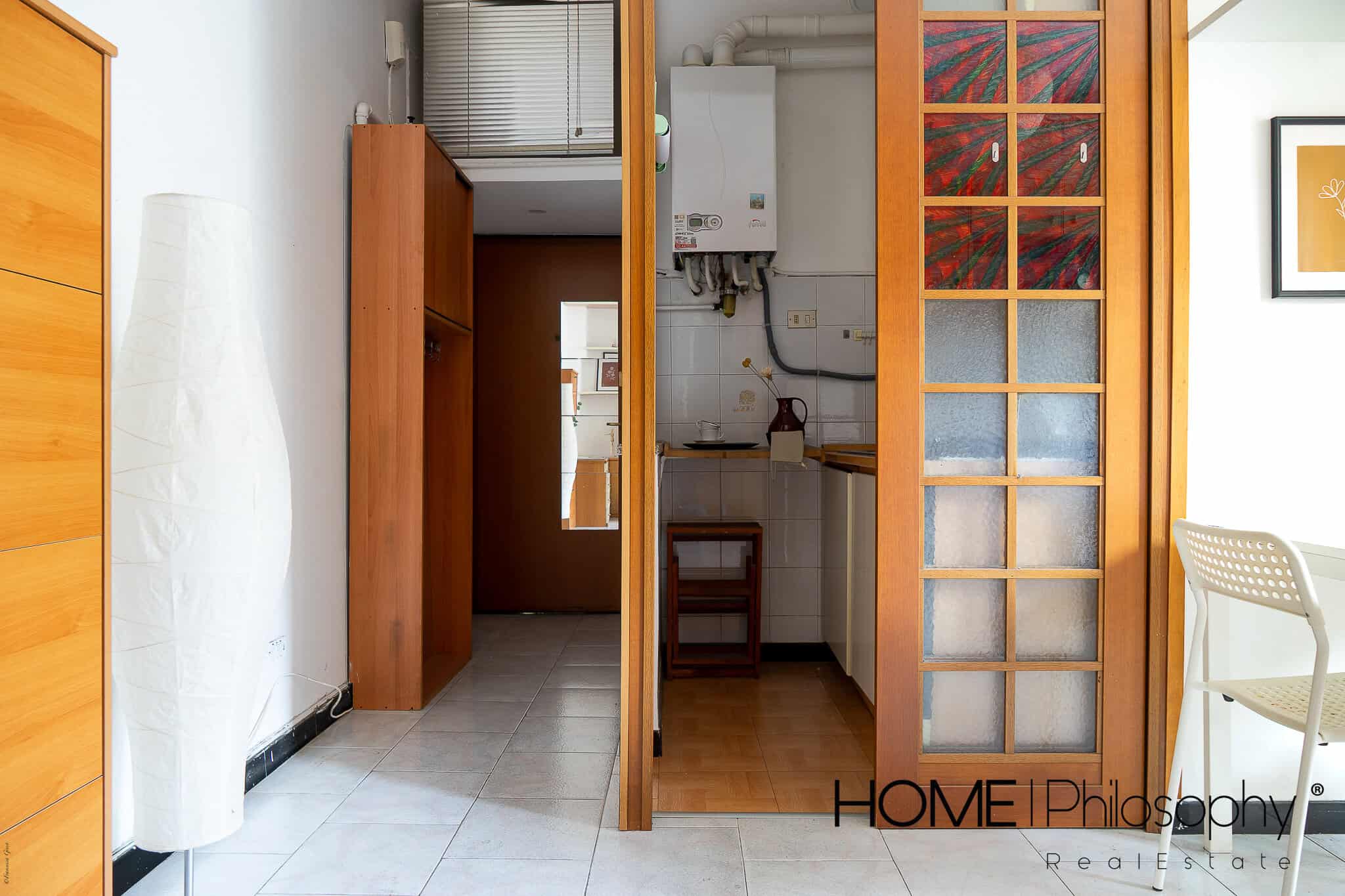 Il cucinotto, discreto e ben organizzato, è separato dalla vista per mantenere pulizia e ordine visivo.